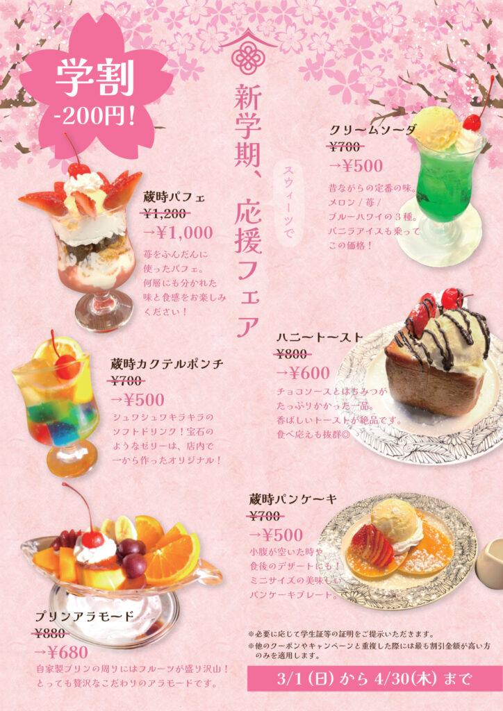 蔵時では、学生様向けのキャンペーンを実施しております。
